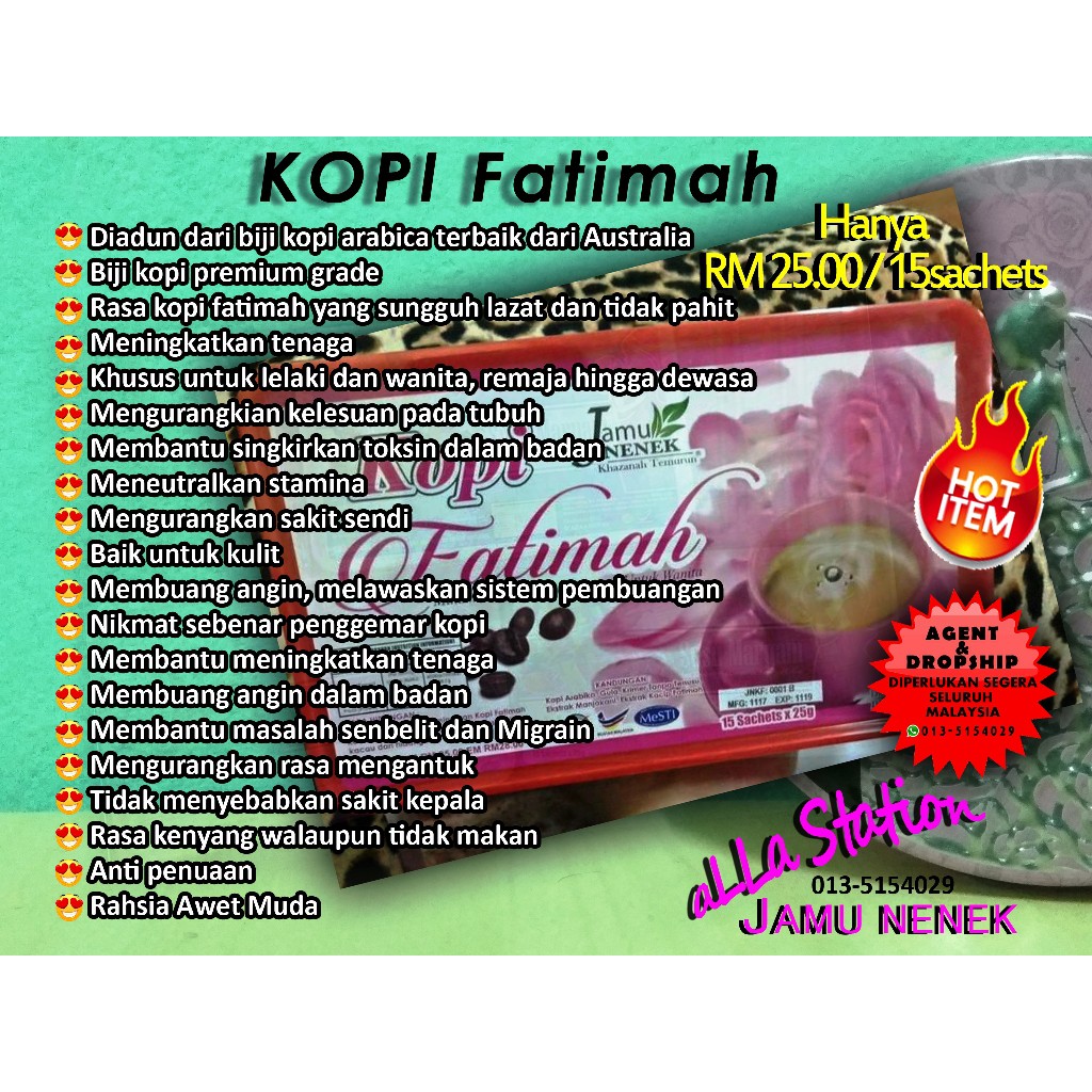 Add to cart Add to Wishlist. Add to Wishlist Qucik View. KOPI FATIMAH JAMU NENEK KHAS BUAT PENCINTA KOPI.