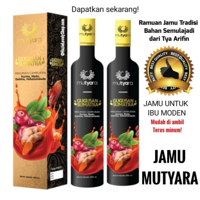 Pembayaran mudah pengiriman cepat bisa cicil 0. Mutyara berikan 3 jenis combo yang menjadi rebutan ramai kerana penjimatan yang sangat berbaloi-baloi. Ramuan nya juga berasal dari turun temurun keluarga Tya Arifin di Indonesia.