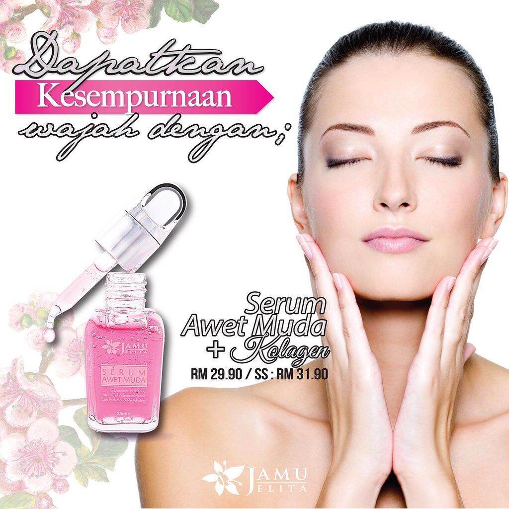 Serum Awet Muda Kolagen keluaran Jamu Jelita dengan ekstrak semulajadi adalah serum ajaib yang mempunyai kesan sebaik botox. Jamu Jelita Serum Awet Muda Serum contain natural extracts are good for skin health and beauty. Jamu Jelita Glutathione Toner Pencerah 60ml Jamu Jelita Pearl White Cream radiance Jamu Jelita Putih Jelita BB Silky JAMU JELITA SET PUTIH MULUS SKINCARE Jamu Jelita Serum Awet Muda JAMU JELITA SET PUTIH MULUS 100.
