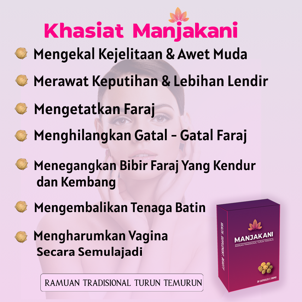 Jamu perapat yang berkesan. Pil perapat Wanita Ranjang Mawar ini dijamin memberi kepuasan dan berkesan kepada pengamalnya. Pencegahan bau yang tidak diingini Manjakani dikatakan bersifat Astringen berupaya membasmi bakteria dan kuman yang mencetuskan bau kurang enak pada faraj. Awet muda antioksida melambatkan proses penuaan sel.
